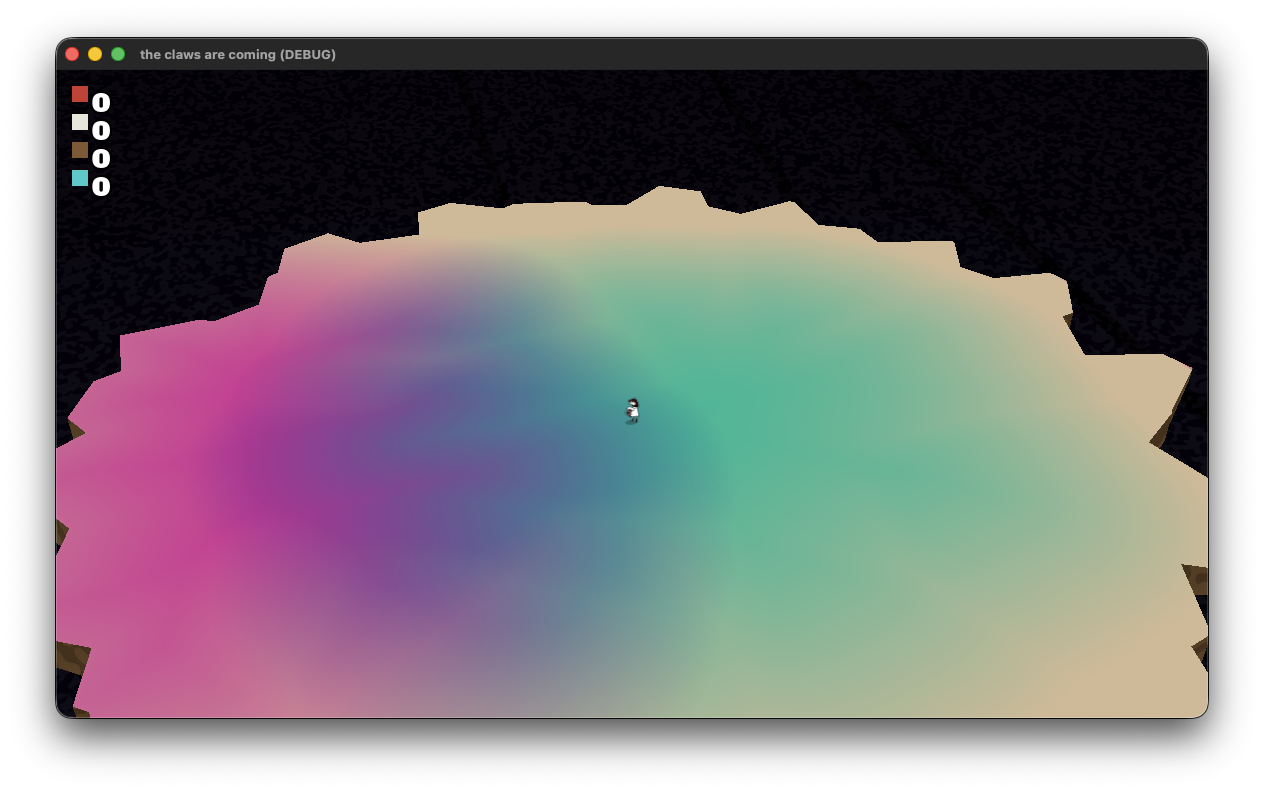 Each water region has its own tide level, so different coastlines can flood independently. And on top of the global tide, every point on the shoreline gets its own wobble phase from FBM noise. The water doesn't advance as a uniform wall — it laps and breathes unevenly, like waves on a real beach.